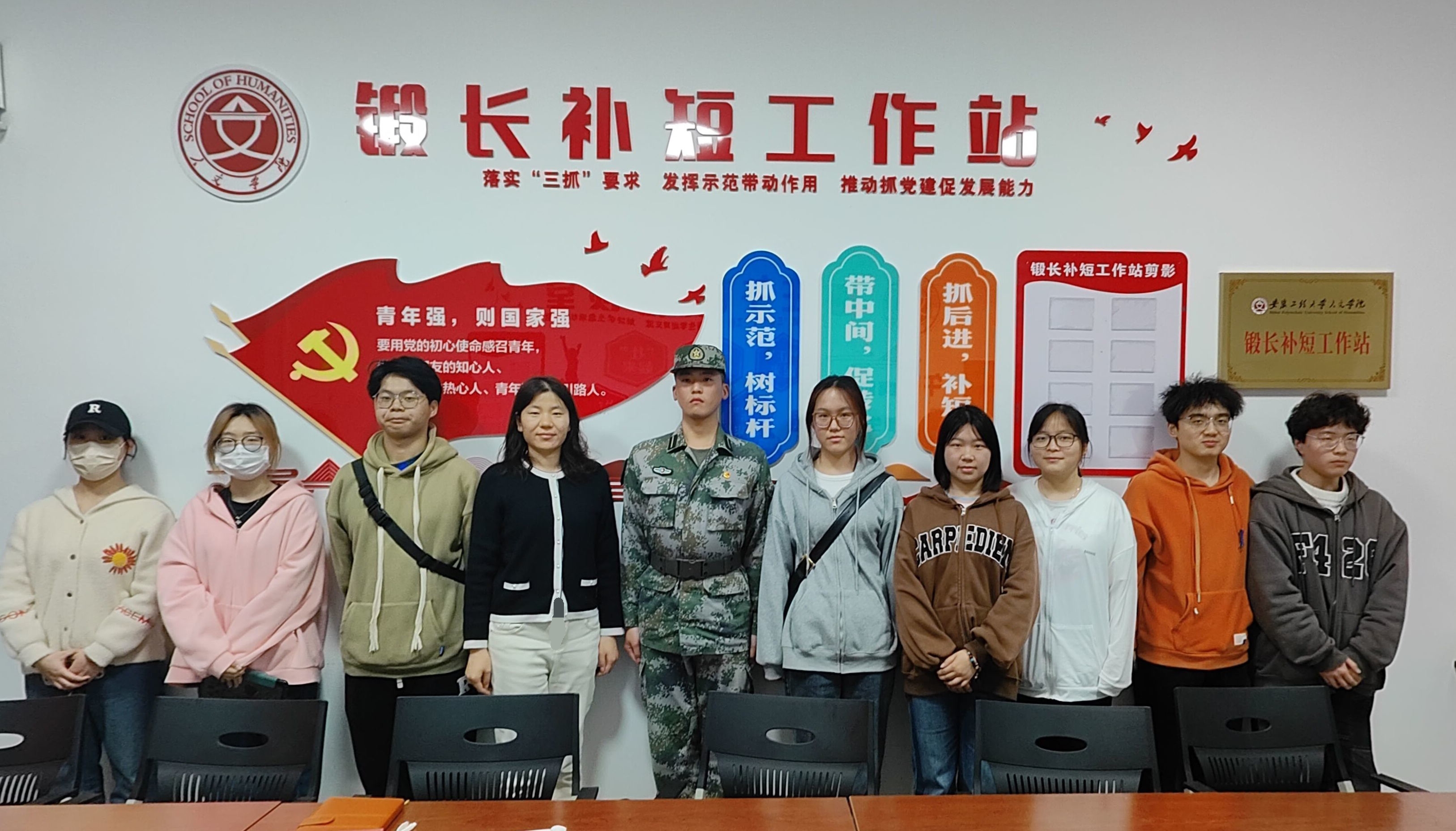 为深入学习贯彻习近平新时代中国特色社会主义思想,落实学校“三抓”和“三全六专”工作要求,推进高校学生和谐社区工作站建设,4月27日晚,人文学院在“锻长补短”工作站举办首场系列活动,学院退役大学生士兵董云翔、行政管理专业学生代表参加活动,活动由人文学院组织员、行政管理专业学生党支部书记李娜主持。