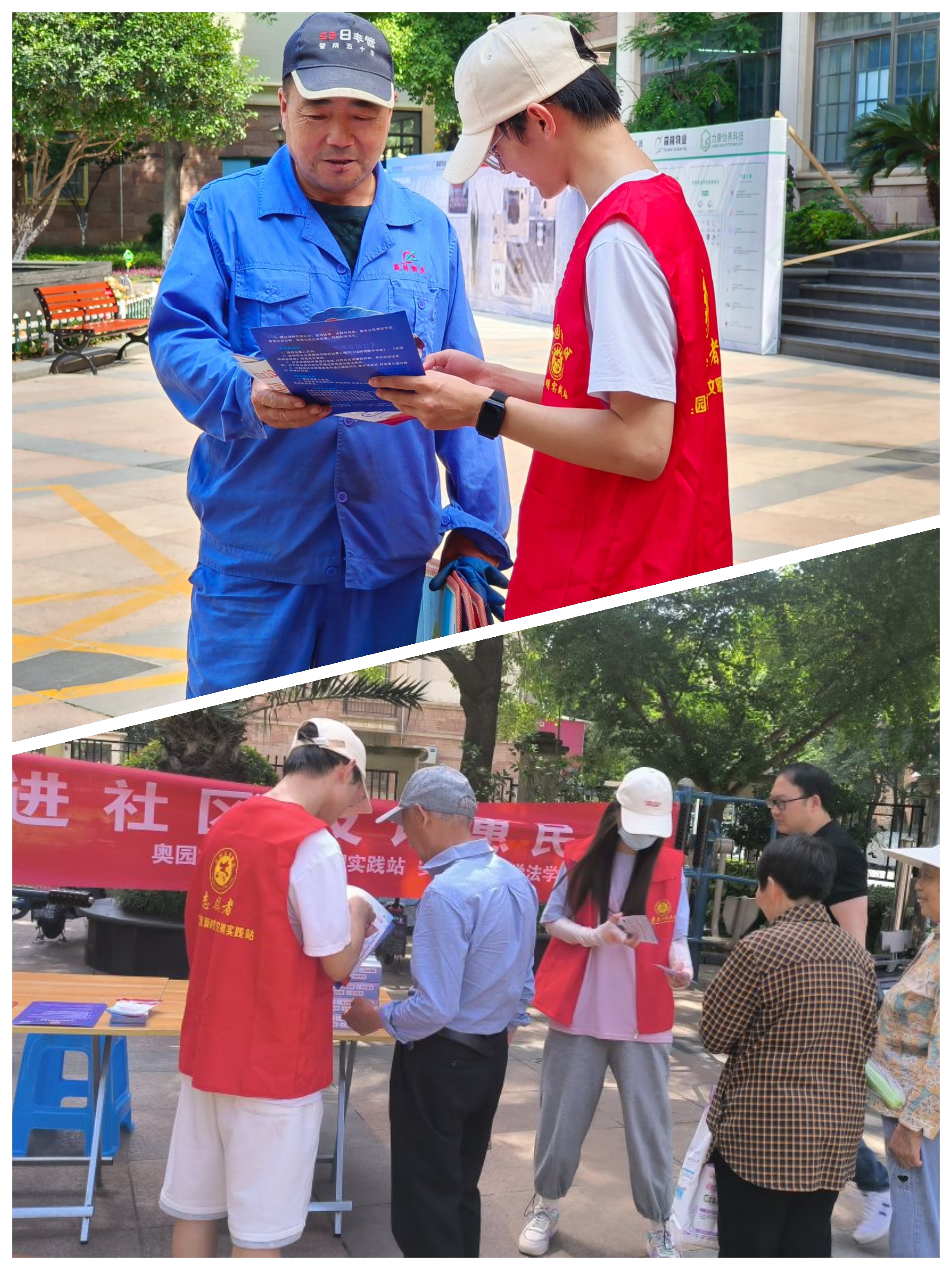 一是社区普法,反诈惠民。“法者,国家所以布大信于天下也”,为提高社区居民的反诈意识与法治观念,5月19日,法学222团支部与南瑞街道奥园社区联合开展反诈宣传进社区活动。法学222团支部的团员们发挥专业优势,通过发放反诈宣传资料、讲解诈骗案例,生动地向社区居民普及了网络诈骗的应对方法及相关法律法规,增强了社区居民的反诈、防诈意识和防范能力。