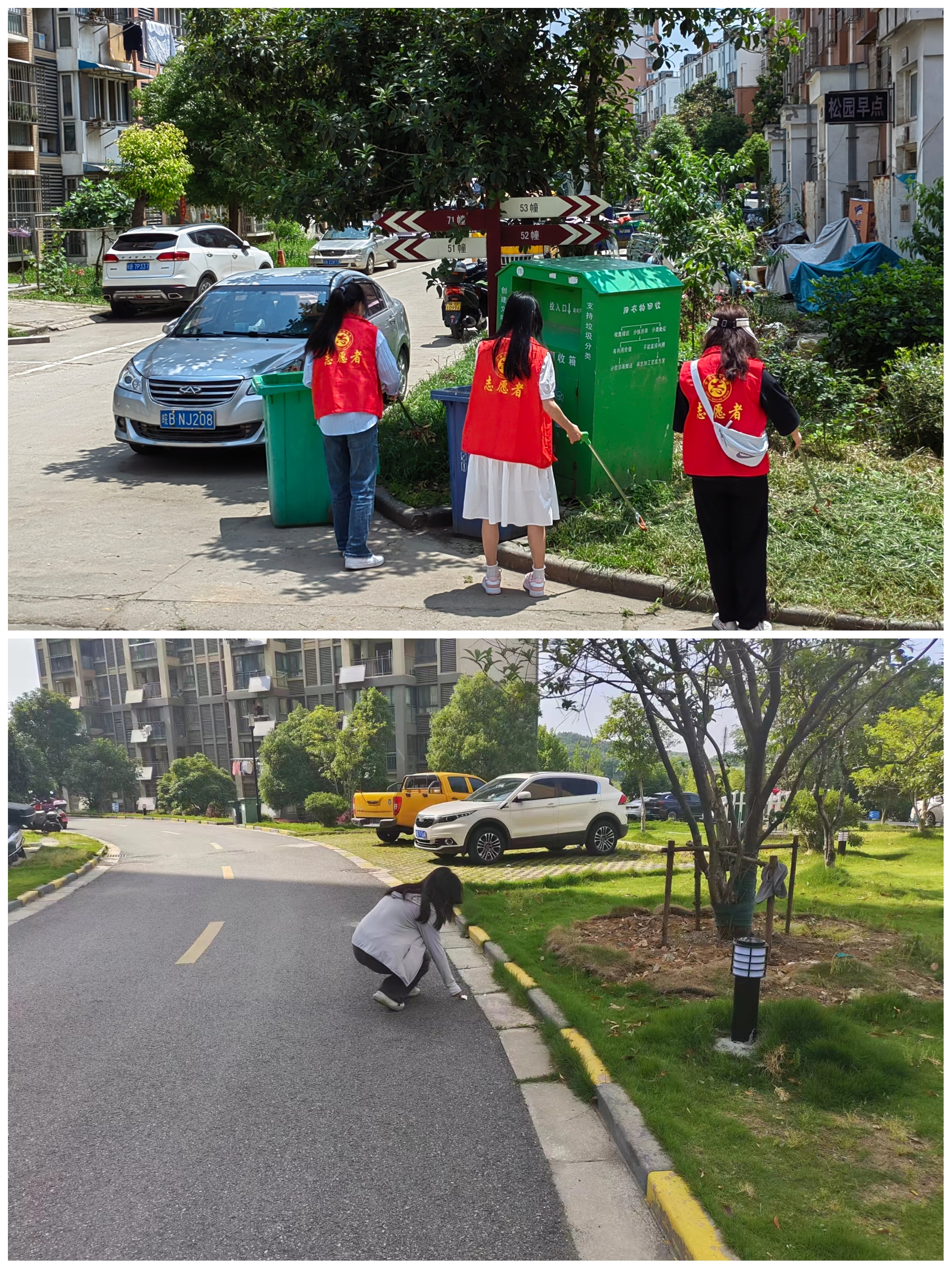 三是清洁家园,绿色之行。为进一步宣传习近平生态文明思想,倡导绿色健康生活方式,守护绿色美好家园,5月19日,行管221团支部与社工221团支部的团员们分别与官陡街道润津花园社区、弋江区马塘街道松元社区联合开展“共建文明,清洁家园”志愿服务活动。志愿者们在经过环保知识交流、志愿服务培训后,前往社区开展垃圾清理工作,同时向往来的社区居民宣传生态文明理念,使社区居民切身感受到周边生态环境的不断优化,提升了居民的幸福感和满意度。