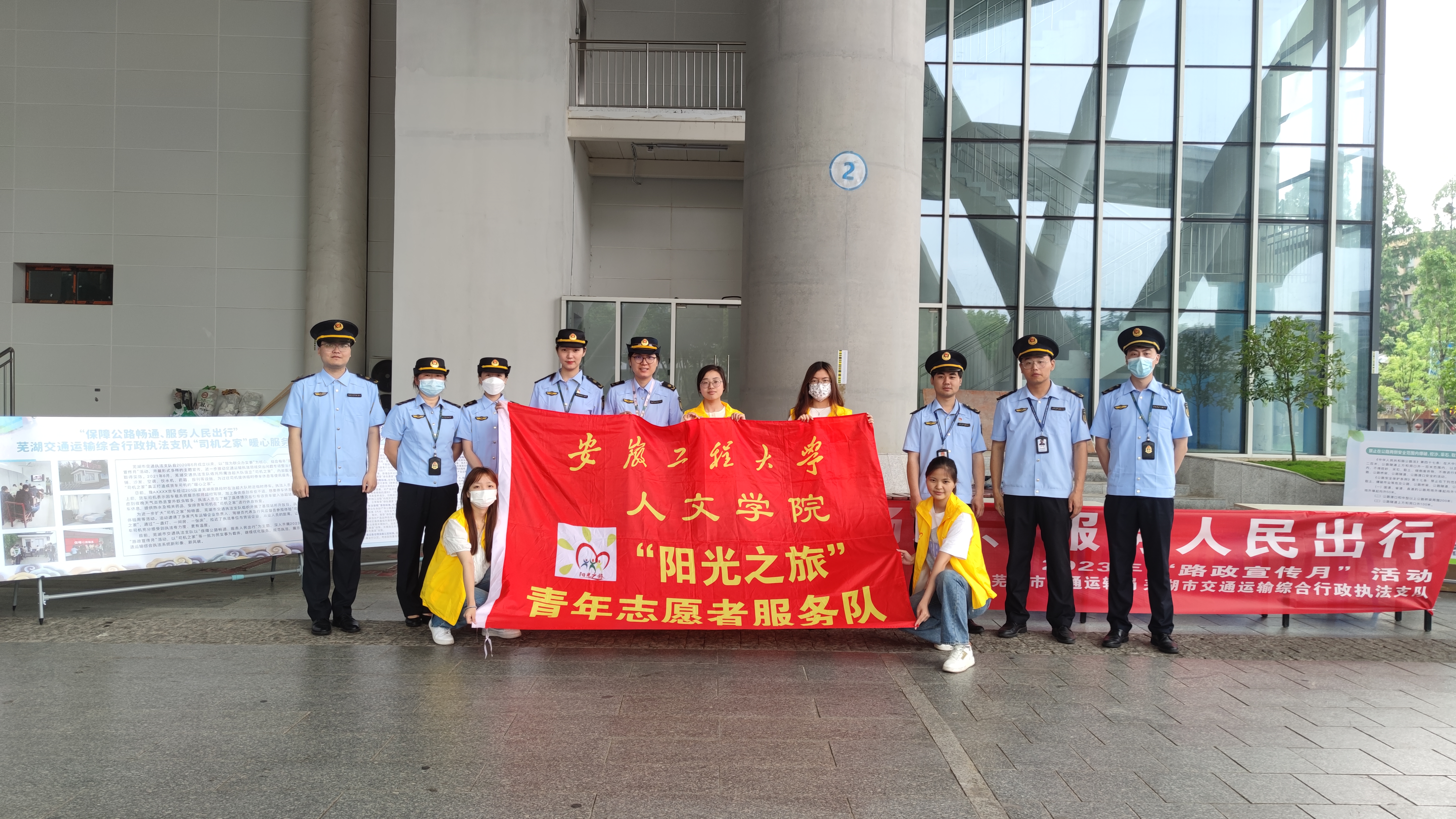 今年5月是全国第九个“路政宣传月”,为深入开展学习贯彻习近平新时代中国特色社会主义思想主题教育,宣传贯彻党的二十大精神,落实“三抓”要求,推进“三全六专”育人实践,5月26日,人文学院团委与芜湖市交通局执法支队团委联合开展“路政宣传月”集中宣传日活动。人文学院团委副书记利昕云、“青领计划”学生代表、“阳光之旅”青年志愿者服务队参加了本次志愿服务。