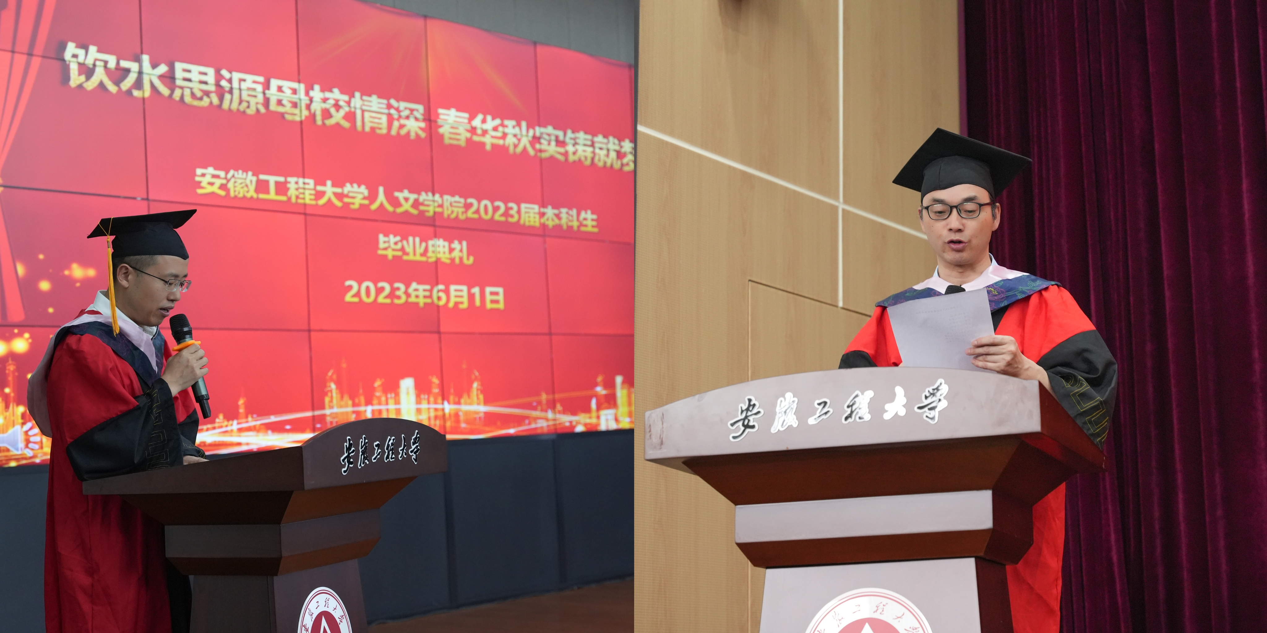 在庄严肃穆的国歌声中,毕业典礼正式拉开帷幕。苏国红表示, 作为一名老师,我和大家一样激动,在此,我向在座的毕业生代表,并通过你们,向全体毕业生同学们,致以热烈的祝贺!向辛勤哺育你们的亲人、悉心指导你们的老师,表达诚挚的谢意。苏国红在致辞中带领毕业生回顾了学校、学院不平凡的发展历程,并从“追梦”、“实干”、“怀德”三条主线,希望毕业生不忘“人文”身份,树立“徽程”形象。