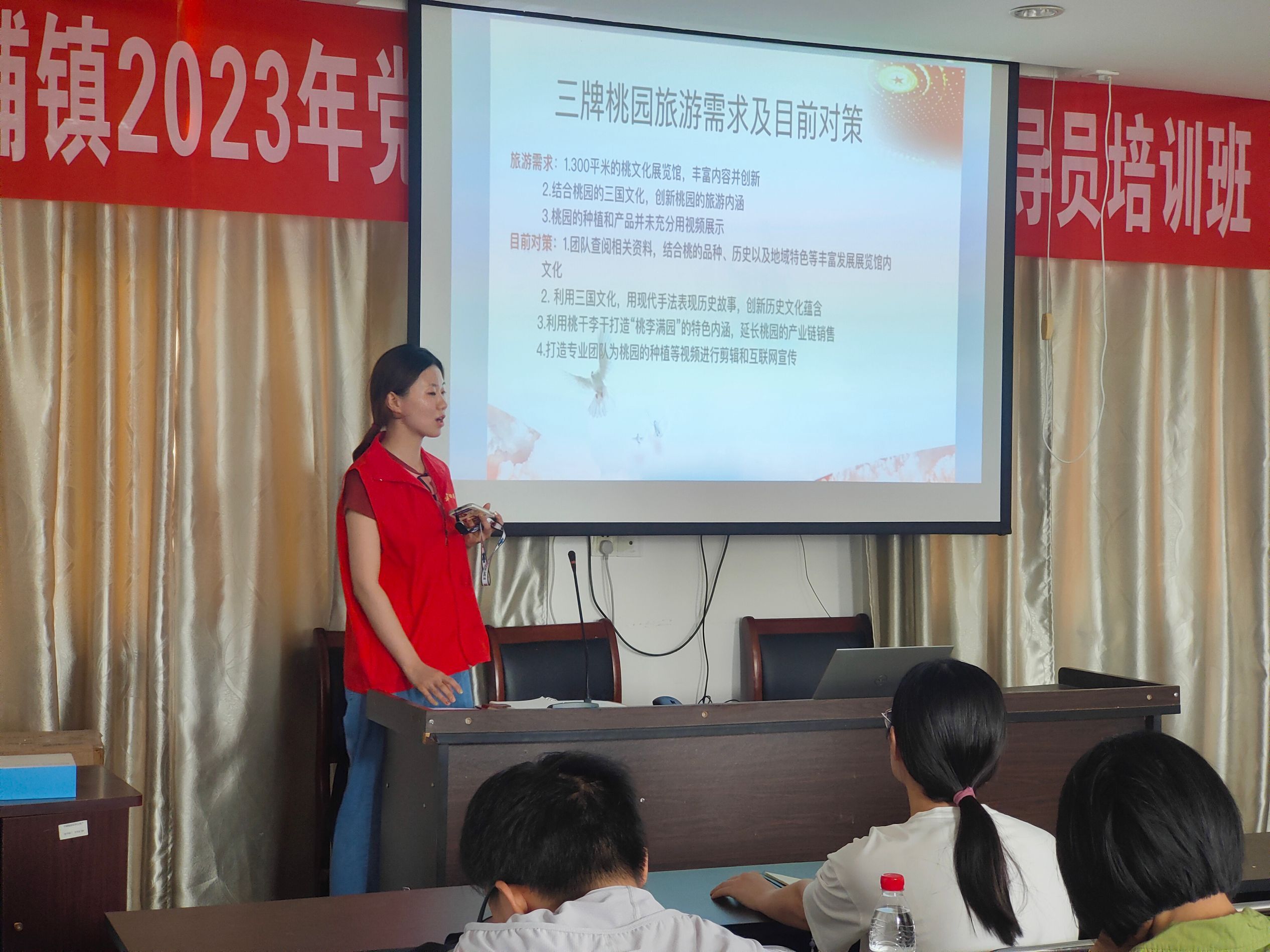 桃韵李香,亮点纷呈,桃花节推动桃文化新发展。6月27日下午,在平铺镇镇政府的安排以及三牌桃园负责人陈星星的邀请下,人文学院“乡村振兴”调研团走进三牌桃园,实地调研三牌桃园发展现状。团队成员在了解当地自然资源和文化底蕴的基础上,将自然景观与文化内涵相结合,提出桃花节旅游带动桃园发展的建议。