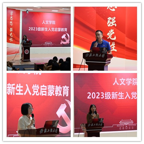 为进一步深入贯彻落实立德树人根本任务,切实践行“为党育人、为国育才”的初心使命,人文学院抓住入学教育关键期,紧扣筑牢理想信念主题,扎实推动入党启蒙与入学教育有机融合,于9月28日在学术报告厅举办了2023级新生入党启蒙教育活动,人文学院党委副书记王中江、学院团委副书记利昕云、组织员李娜、各学生党支部书记、2023级全体本科新生共同参加。活动由利昕云主持。