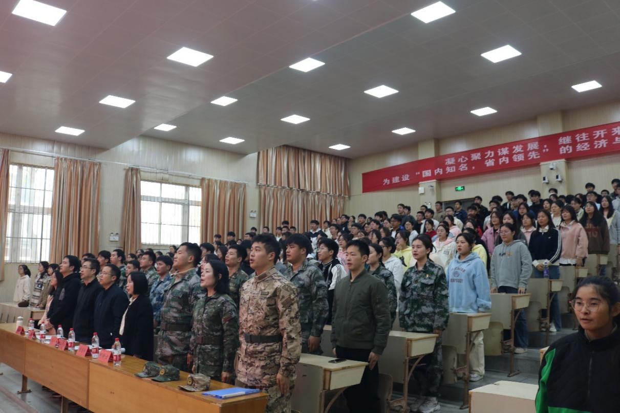 为落实“三抓”工作要求,推深做实“三全六专”育人实践,发挥退役大学生示范引领作用, 探索国防教育与思政融合的新路径,11月22日下午,人文学院在2教报告厅召开“军歌嘹亮团”启动仪式,并进行首场思政与国防融合的榜样故事红色宣讲活动。人文学院党委书记刘一,党委副书记王中江,辅导员章雪平、余丹丹、范夏勋,以及人文学院全体退役大学生、2023级全体新生参加了本次活动。活动由学院团委副书记利昕云主持。