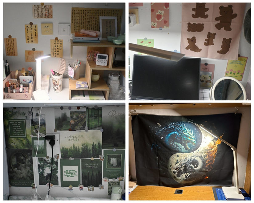 评选过程中,各新生寝室代表向学院领导和老师介绍了寝室设计思路和特色,寝室间各展风采。墙壁上张贴着精美的壁纸和创意作品,窗台上摆放着清新绿植和手工制品,寝室内的日用品摆放得整齐有序。参赛者充分发挥想象力,用灵巧的双手将寝室打造成一个个温馨小天地,为寝室增添了人文气息与生机活力。
