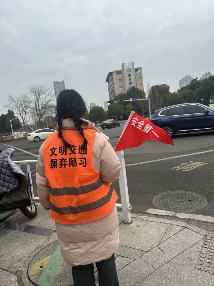 1月29日,在宣城市广德市,综合部委员行管231王灿协助交警对驾乘电动车、摩托车未按规定佩戴安全头盔的驾驶人进行交通安全劝导教育,使他们从思想上、行动上重视交通安全,从源头上消除事故隐患。