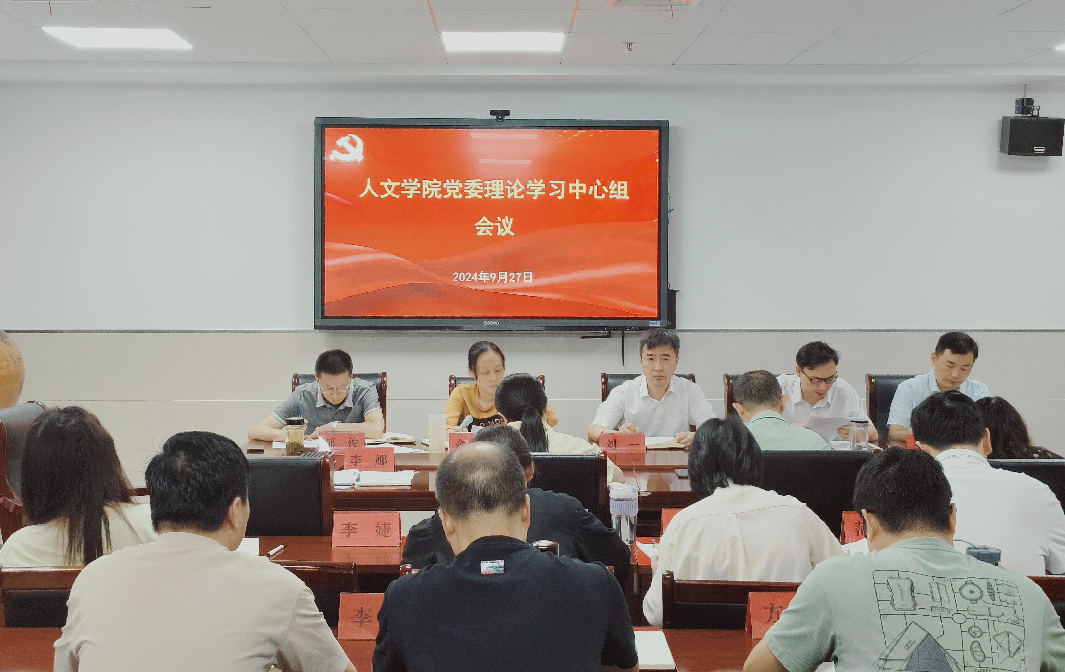 9月27日,人文学院党委理论学习中心组在学院1307会议室召开会议,专题学习全国教育大会精神。院领导,院党委理论学习中心组成员参加会议。会议由院党委书记刘一主持。