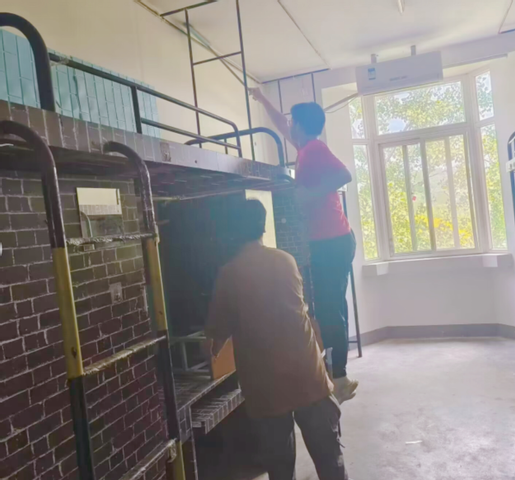 下午三点,清扫活动开始前,学院辅导员老师们向大家介绍了本次清扫活动的主要活动内容及注意事项,包括检查宿舍水电是否正常,桌椅用具是否齐备,地面及床板灰尘清理。提醒大家在清扫过程中注意自身安全,清扫认真细致,真心诚意为学弟学妹做好清扫志愿服务。介绍完毕后师生们按照活动安排共同参与到了宿舍卫生大清扫活动中。清扫过程中,大家怀揣着对23级学弟学妹们到来的期盼之情,以热情饱满的工作态度参与到劳动中,不怕脏不怕累,床上擦灰尘,地面清垃圾,桌椅摆整齐,细致且投入,专注且耐心。
