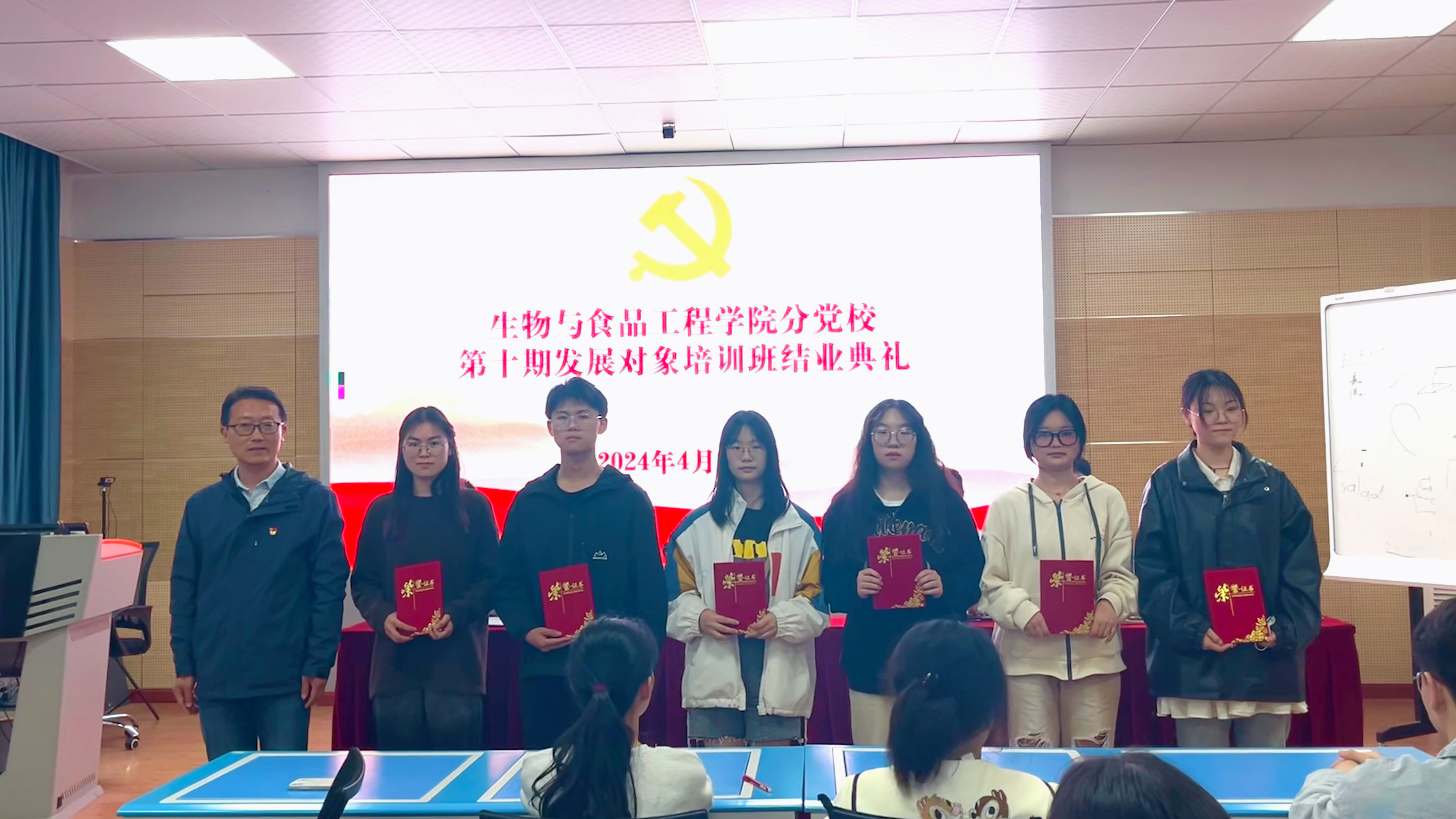 4月22日下午,生物与食品工程学院分党校第十期发展对象培训班结业仪式在虚拟仿真中心举行。学院党委副书记王彦青出席结业仪式,学院全体学生党支部书记及培训班全体学员共计45人参加结业仪式。