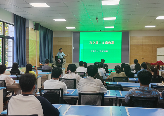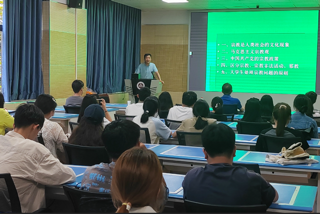 讲座伊始,刘聪教授首先回顾了宗教的起源与发展,强调宗教作为人类社会文化现象的重要地位。他通过详实的史料和生动的案例,向师生们展示了宗教在不同历史时期、不同社会背景下的复杂面貌,使大家对宗教有了更加全面深入的认识。随后,刘聪教授深入剖析了马克思主义宗教观的核心要义。他指出,马克思主义宗教观是在科学世界观和方法论指导下形成的,是对宗教本质、作用和发展规律的深刻揭示。刘教授详细阐述了马克思主义宗教观的基本观点,包括宗教的产生、宗教的本质、宗教的作用以及宗教的未来等方面,使师生们对马克思主义宗教观有了更加清晰、准确地理解。在讲座中,刘聪教授还特别强调了大学生处理宗教问题的原则。他指出,在社会主义社会,宗教仍然存在并发挥着一定的作用,但宗教必须服从和服务于社会主义事业。他要求师生们要树立正确的宗教观,既要尊重和保护公民的宗教信仰自由权利,又要坚持宗教与社会主义社会相适应的原则,共同推动社会主义事业的繁荣发展。除理论讲解外,刘聪教授还结合当前社会热点和实际问题,对师生们进行了生动的案例分析。他通过讲述一些发生在身边的真实故事,使大家清楚地区分宗教、宗教非法活动、邪教。同时,他也就如何正确处理宗教问题、维护社会稳定和民族团结提出了宝贵的建议。