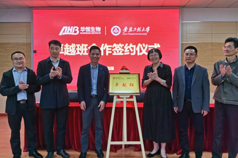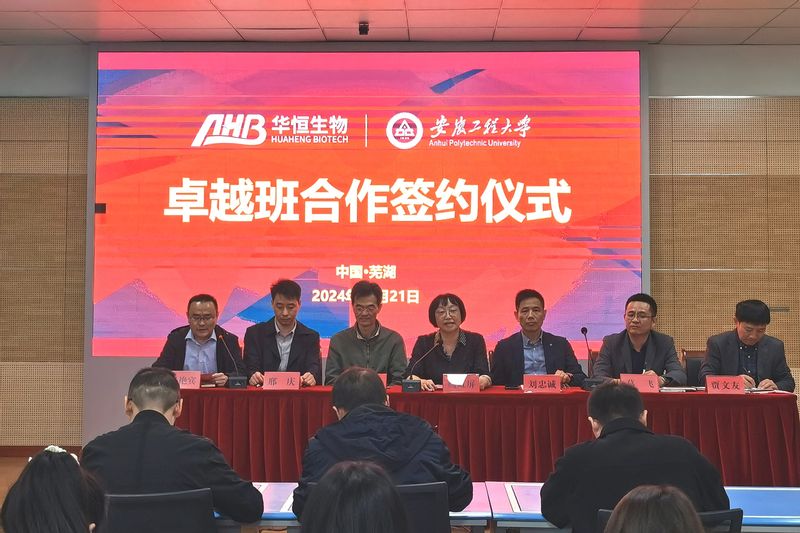 10月21日,学校与安徽华恒生物“卓越班”签约启动仪式在生物与食品工程学院虚拟仿真中心举行。安徽华恒生物科技股份有限公司副总裁刘忠诚,学校副校长周虹屏出席,教务处相关负责人,生物与食品工程学院党政领导、各专业负责人、专业教师代表、“卓越班”班主任、卓越班2022级、2023级学生代表参加活动。