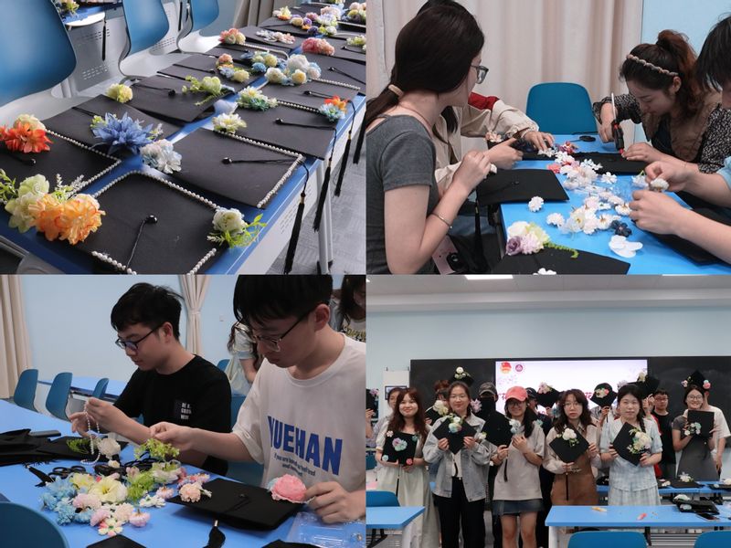 【美好生活种子行动】生物与食品工程学院举办“花缀帽檐,定格青春”簪花学士帽制作活动
