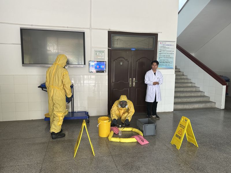 开展应急演练,提升处置能力。6月6日,学院开展危险化学品泄露应急演练,全体研究生及实验室负责老师参加。本次演练模拟了实验室浓硫酸倾倒泄漏,导致人员受伤时,安全专员从人员疏散、泄漏点隔离、紧急冲洗、环境监测、防护服穿戴、残液处理等方面演示正确处理方法。演练过程紧张有序,配合默契,有效检验了应急预案的实用性和可操作性,提升师生应对危险化学品泄漏事故的应急处置能力以及自救能力。