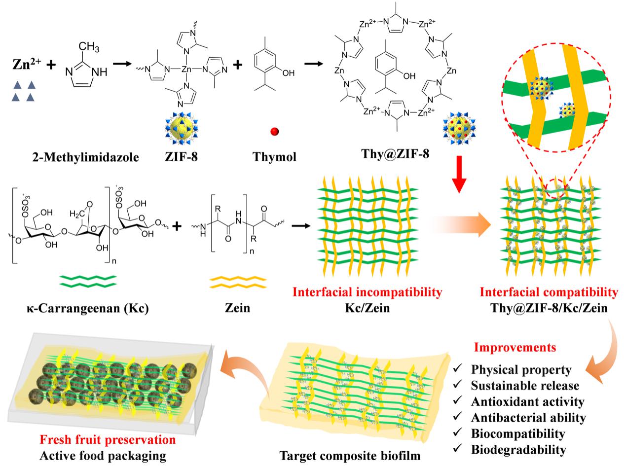 近日,我校生物与食品工程学院生物载体材料工程方向(生物工程学科)葛飞教授团队的唐红进课题组在国际知名期刊《Carbohydrate Polymers》(中科院1TOP期刊,IF=12.5)上发表题为“Preparation and characterization of thymol-loaded ZIF-8/κ-carrageenan/Zein composite film as active food packaging with enhanced functional properties for blueberry preservation”的最新研究成果。日韩欧美福利视频_黑人巨大人精品欧美三区_欧美成人另类人妖_欧美在线精品一区二区三区_欧美一区二区三区性视频_日韩精品欧美视频_性欧美极品xxxx欧美一区二区为论文第一完成单位与通讯单位,生物与食品工程学院2025届生物与医药专业硕士研究生李会会为论文第一作者,唐红进教授为通讯作者。
