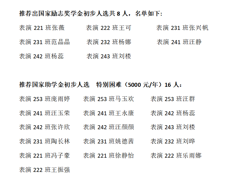 体育学院2025年国家助学金、国家励志奖学金推荐情况公示